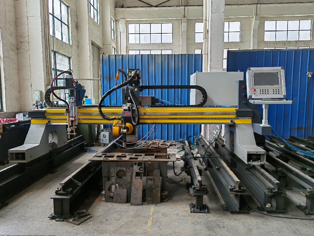 Heavy Duty Gantry CNC Plasma Flame Cutting Beveling Machine Delivery To AmeriaGantry cnc plasma flame cutting beveling machine , all high configuration control system , thc and plasma source , it can cut and bevel metal plate in one time .Machine ready at workshop test :Gantry cnc plasma