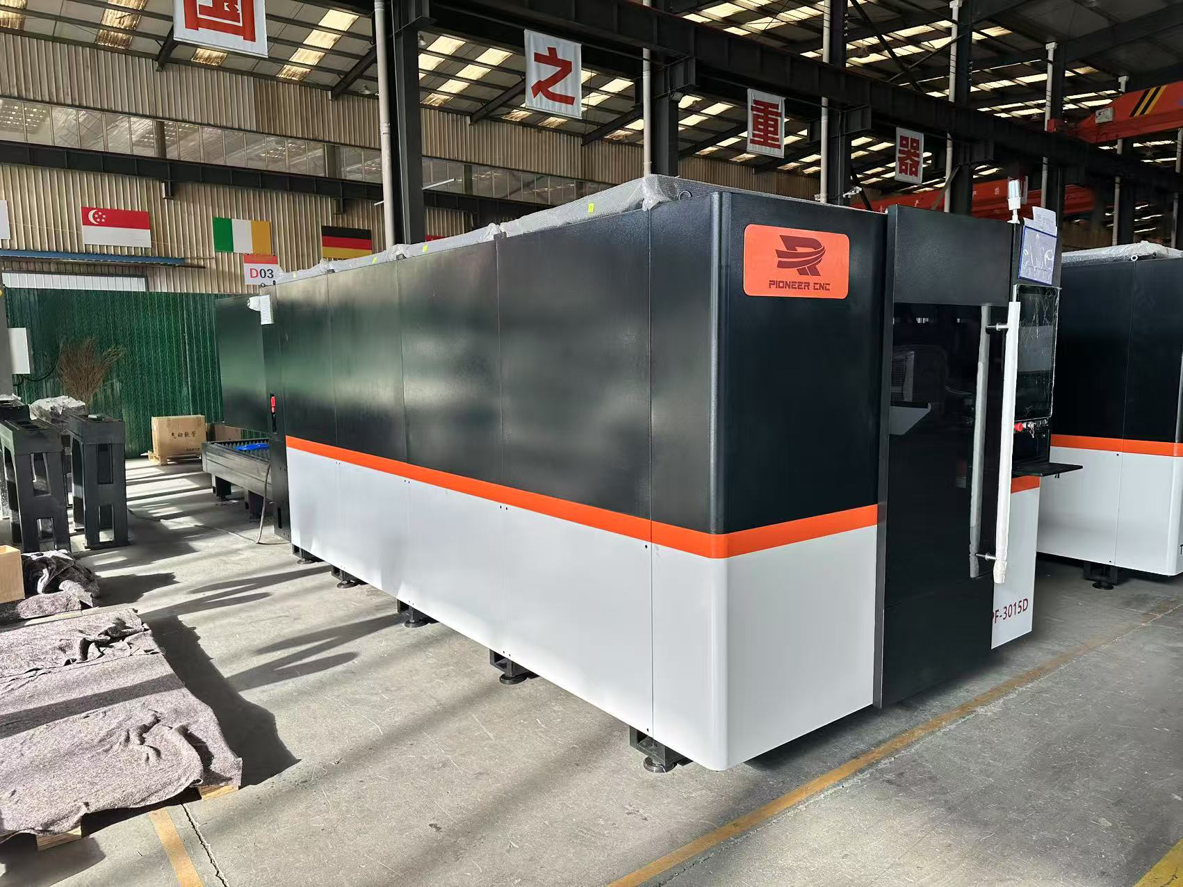 Fiber laser plate cutting machine with doube table and full enclosed cover , widely used for metal working , advertising ,car processing ect industry .CONFIGURATIONS PARAMETRES1Machine body Heavy duty steel welded ,strong structure , machine bed all use large milling machine mill b